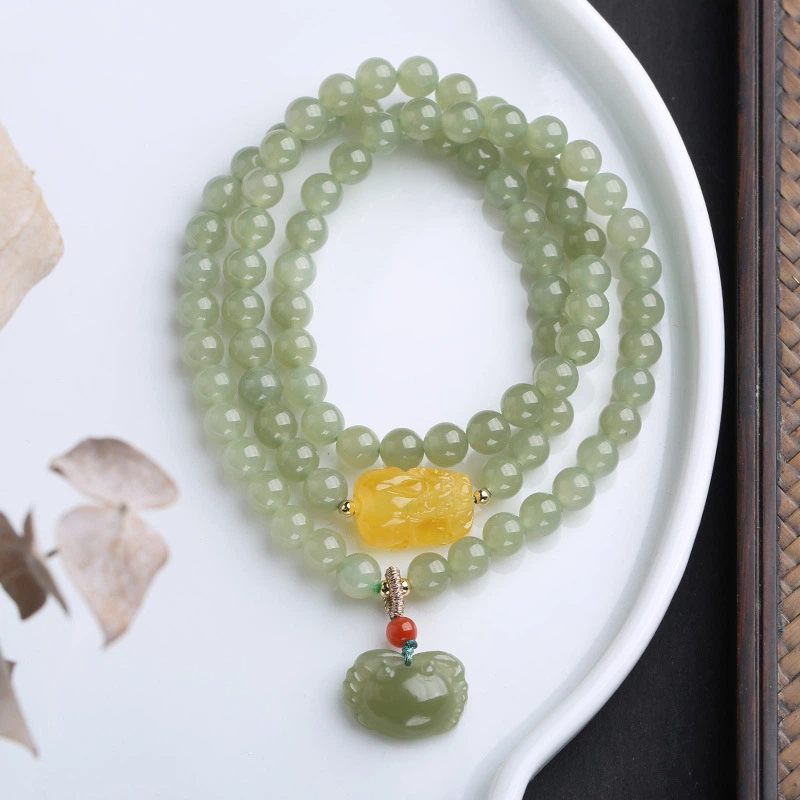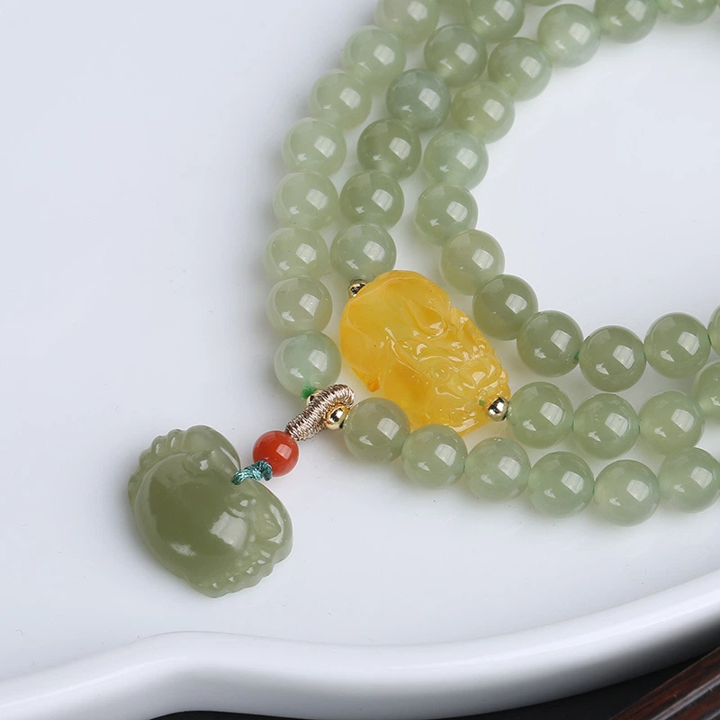 TerraDharma "Emotion Balance &Nurtured Fortune" Natural Amber & Hetian Jade Bracelet