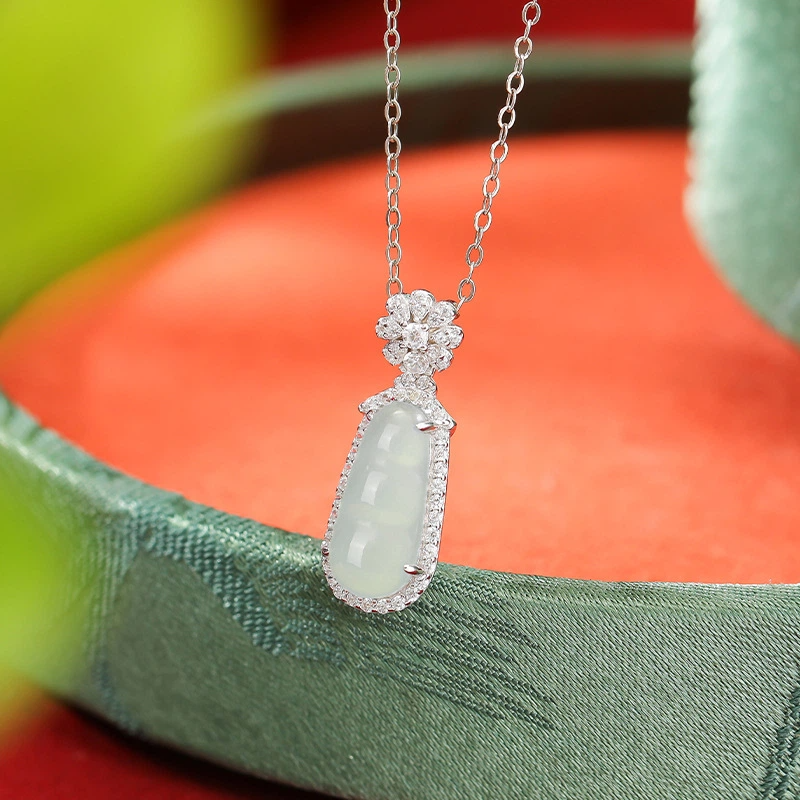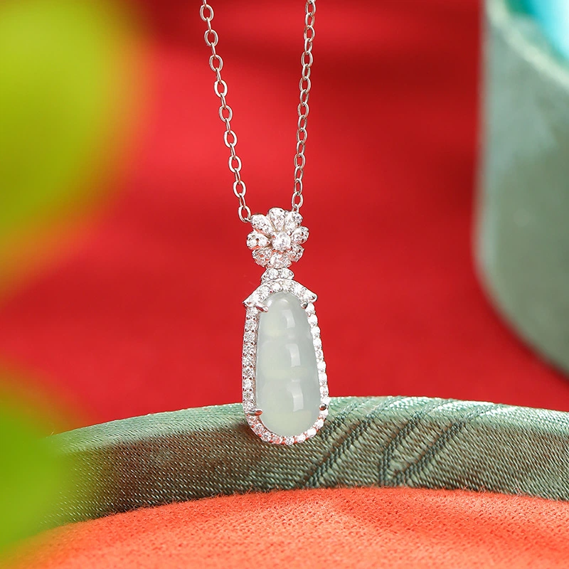 TerraDharma "Longevity Blessing & Fruitful Luck" Blue Water Jade of Fortune Pod Pendant Nacklace (with Sterling Silver)