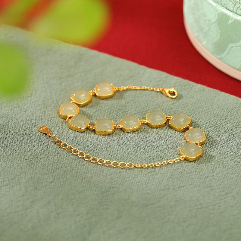 TerraDharma "Spirit Soothing & Peaceful Vitality" Natural Hetian Jade Geometric Square Bead Bracelet