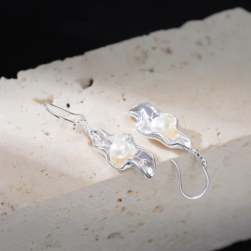 TerraDharma "Spiritual Uplift & Prosperity Bearing" Freshwater Pearl with Lotus Leaf Shape Earrings
